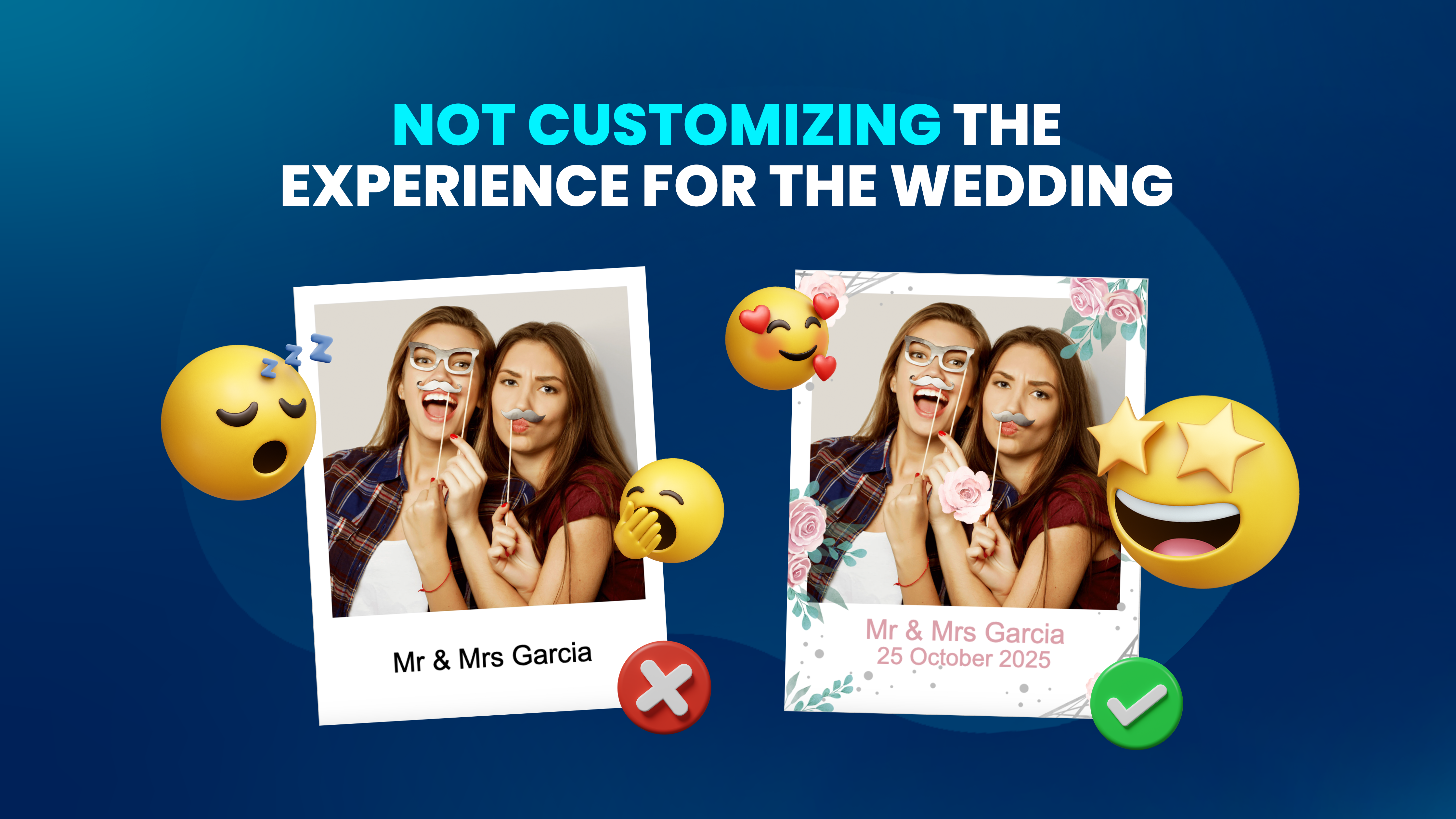 Each wedding is unique, and a one-size-fits-all photo booth setup won’t create the immersive experience couples and guests expect.