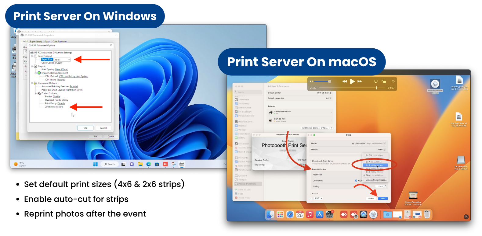 - Set default print sizes (4x6 & 2x6 strips)